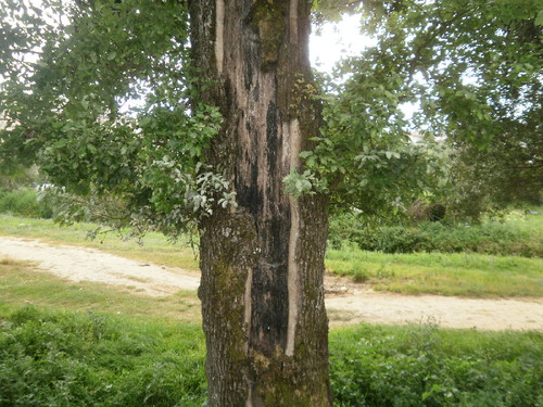 Na quinta grande de Meleças o que resta do seu antigo carvalhal, resume-se actualmente a pouco mais do que um magnifico carvalho negral, durante muito tempo utilizado para apoio da rede do galinheiro que "prosperava" sob a sua copa. No presente apresenta pujante aspecto vegetativo, resultante de ter acabado o galinheiro e a ocupação, ilegal do terreno circundante. Há um pormenor visível no tronco da árvore, consequência do uso dado à sua casca. A parte do tronco virada para onde estava o aviário, instalações de outros animais, coelhos e curral de cabras, apresenta uma incisão de tamanho significativo devido á extracção da cobertura do caule.