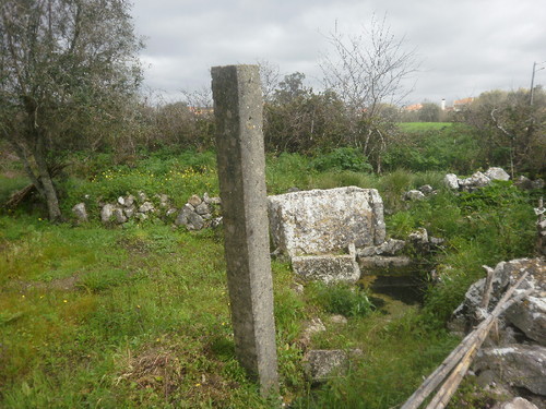 Deparámos com indícios duma cegonha na proximidade de Cortegaça, aldeia do concelho de Sintra. Estamos na presença de vestígios que atestam o carácter primitivo da "bimbarra" outro dos nomes do engenho: a água era vertida num tosco recipiente escavado no calcário, depois lançada na levada de rega. Um exemplo da capacidade de adaptação dos nossos antepassados as dificuldades do meio envolvente. O poste de cimento, substituto da forquilha, testemunho, que a cegonha ou "burra" funcionaria ainda não há muito tempo.