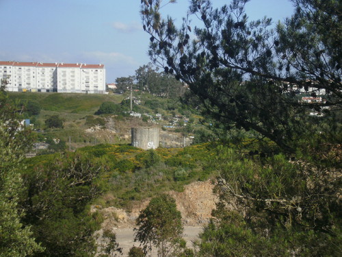 Quem viaja no comboio de Lisboa para Sintra, passada a estação ferroviária da cidade de Agualva-Cacém no cruzamento da linha, quando uma via diverge para Mira Sintra Meleças e outra para Rio de Mouro através das amplas janelas da carruagem, poderá contemplar à esquerda na margem da ribeira da jardas, antiga quinta dos frades Loios, onde dependurada num arco alongado imitando rustíco campanário, sineta singela assinala o lugar da capela. Em plano superior destacando-se no matorral da charneca a silhueta cilindrica de um moinho de vento, o moinho da oca. Acerca deste engenho Leal da Câmara escreveu em setembro de 1944, na comunicação apresentada no Congresso da Rinchoa: "moinho sem velas nem capacete e que deixara de ser, há longos anos já, o árbitro do cantar e do sibilar dos ventos para se transformar, coitado!... em simples marco geodésico indicado nas cartas do estado maior com um pontinho especial que marcava o último apoio das linhas estratégicas de Torres"